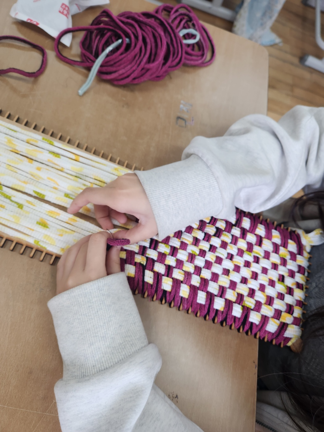 이렇게 끼우고 120개의 고리를 엮고
